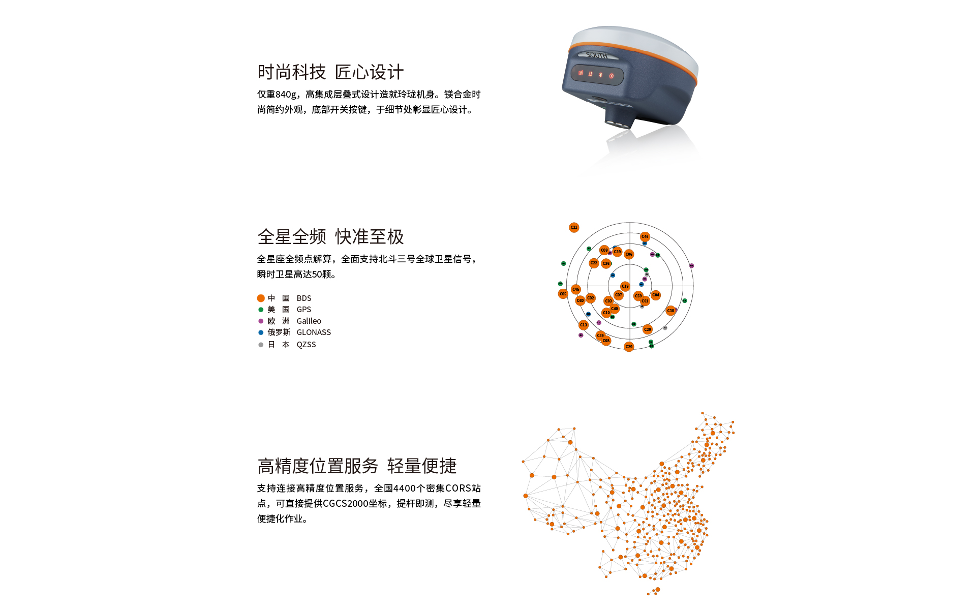 測量性能 | 信號跟蹤 | 1598通道 BDS-2:B1I、B2I、B3I BDS-3:B1I、B3I、B1C、B2a、B2b GPS: L1C/A,L2P,L2C,L5,L1C* GLONASS: G1,G2,G3* Galileo:E1,E5b,E5a,E5 AltBoc*,E6c* SBAS:L1C/A,L5* QZSS:L1 、L2C、 L5 IRNSS:L5* |