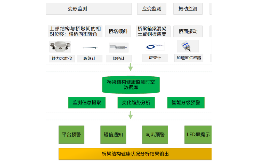 (2)當(dāng)結(jié)構(gòu)出現(xiàn)異常信息時,系統(tǒng)自動進(jìn)行預(yù)報警,在監(jiān)控中心以聲音以及警示燈(屏幕警示)方式進(jìn)行報警,并通過短信方式將信息及時轉(zhuǎn)達(dá)給相關(guān)管理等人員。